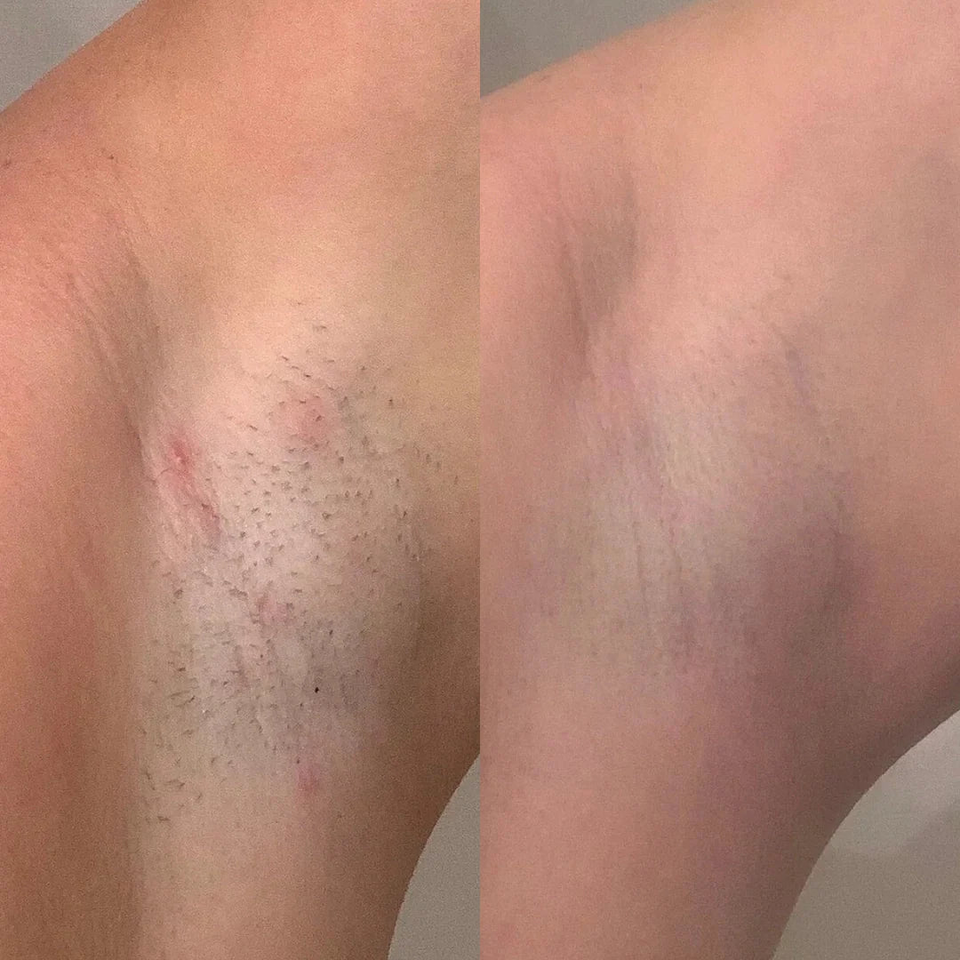 Voyez la différence par vous-même : peau nette, douce et sans irritation.
