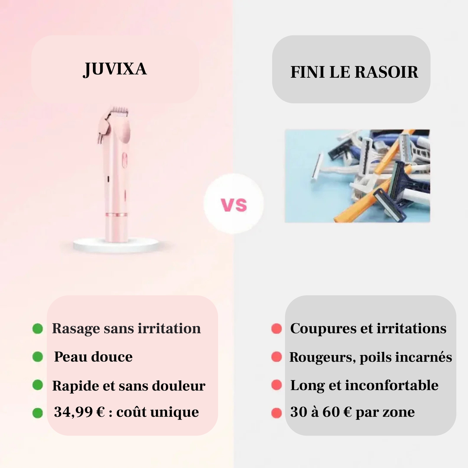 Grâce au rasoir électrique JUVIXA, dites adieu aux coupures et aux rougeurs.